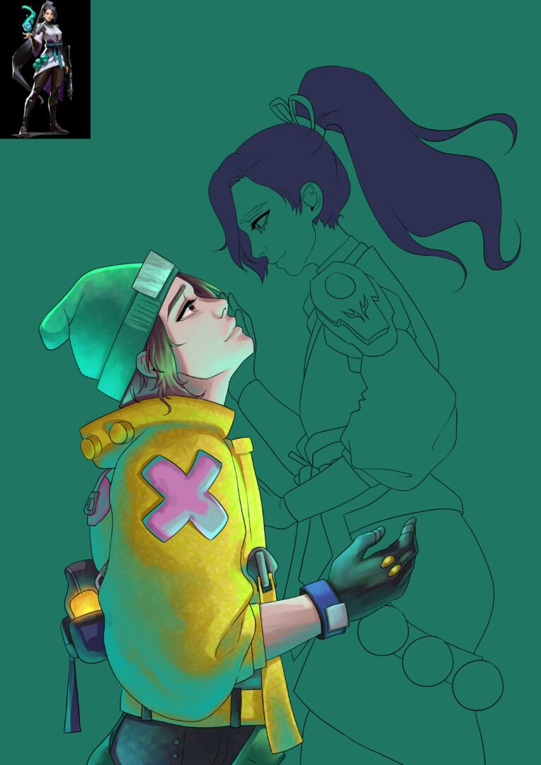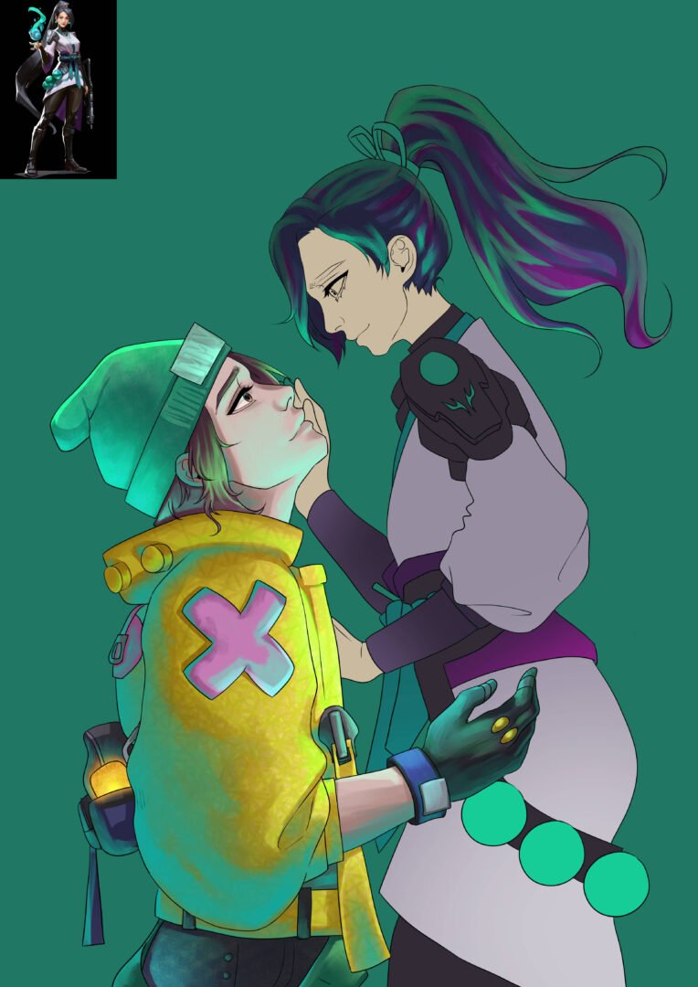 The final artwork blends stylized portraiture with game aesthetics, creating a piece that feels personal, heartfelt, and unmistakably Valorant. The couple’s expressions, enhanced by the vibrant lighting, give the illustration a cinematic, almost in-game cutscene quality.