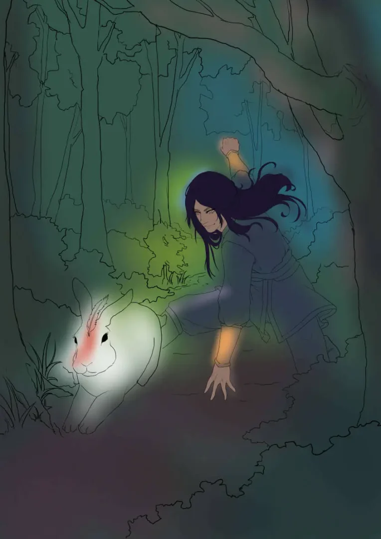 This illustration presented unique challenges. I’m still gaining confidence with environment painting, so I took time to think about how best to execute this scene. Additionally, drawing the rabbit was outside my usual skill set, as I rarely work with animals. This project forced me to step out of my comfort zone, which was both challenging and rewarding.