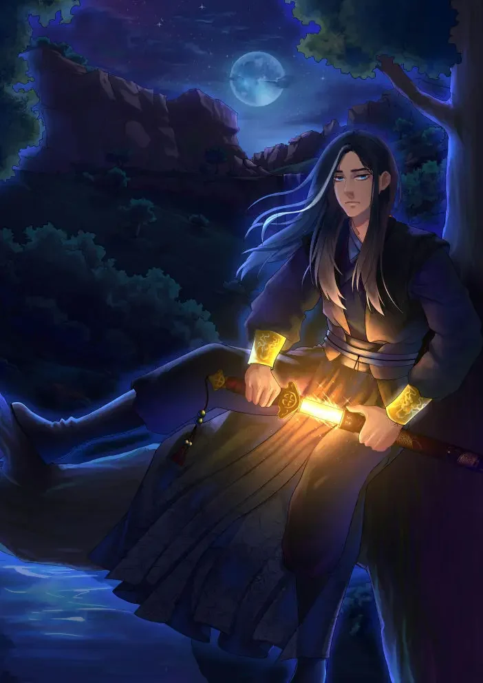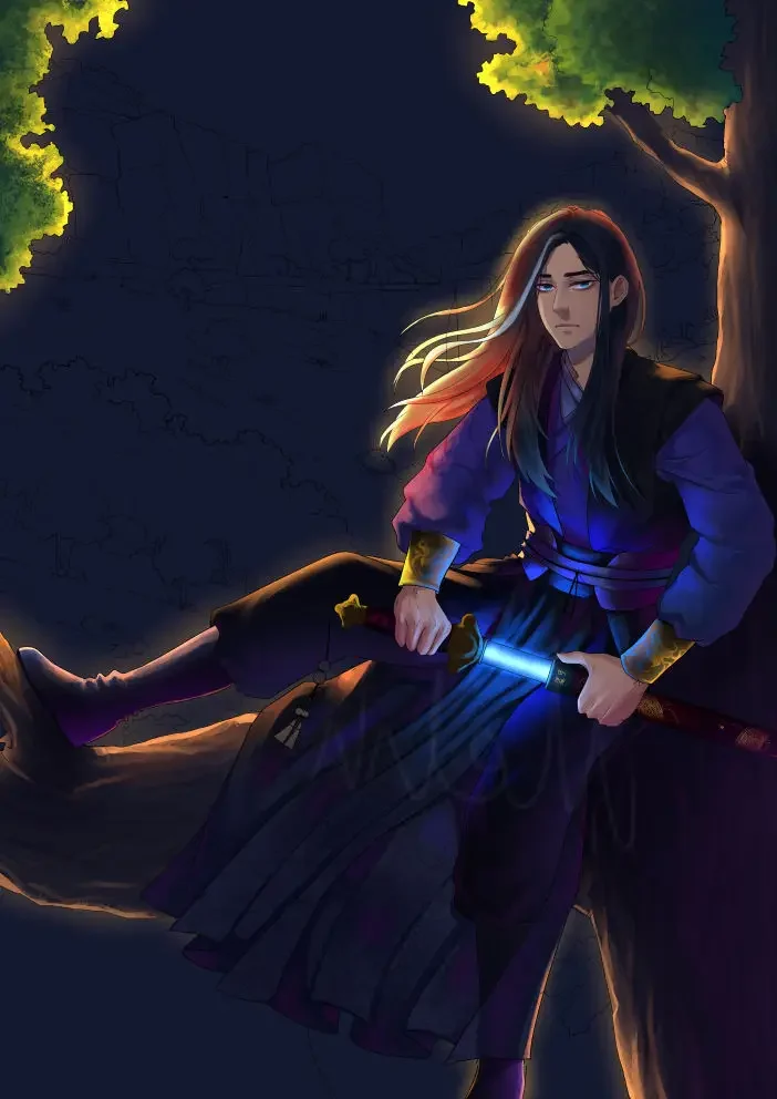 At that point, a little switch flipped in my mind. Frustrated with the limitations of my ideas and knowledge, I decided to try a new approach. Since I couldn’t make the character stand out by brightening him (given his darker design), I reimagined the scene as a nighttime setting.